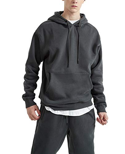 Sidiou Gruppo Moda Felpa con Cappuccio per Uomini Donne Classico Design Semplice con Cappuccio 310GSM Grigio Scuro XL