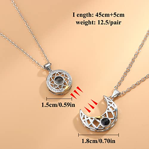 SIDQHICAC Coppia di collane magnetiche con sole e luna,Collana per Coppie o Migliori Amici Magnetica 100 Lingue Ti Amo Proiezione BFF Bracciale Coppie Collane Gioielli