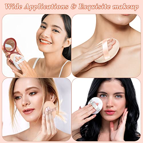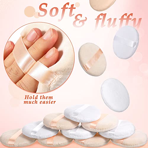 30 pezzi piumino in cotone per trucco piumino morbido lavabile per trucco 6 cm piumino per trucco cosmetico con cinturino in nastro per cipria in polvere per il corpo in polvere minerale, bianco e tonalità della pelle