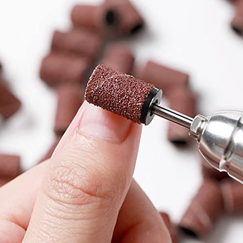 SIDQHICAC 100 Pezzi Pacchetto Levigatura Bande,Con 1 testa abrasiva,Professionali 80# Ghiaia Pezzo di Sabbia Set Levigatura Bande per Pedicure del Manicure del Trivello del Unghie Macchina