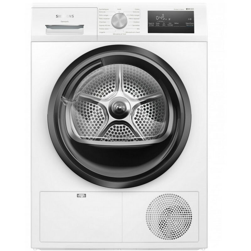 Asciugatrice a pompa di calore iSensoric iQ300 Siemens WT45HV14FR, asciugatura molto efficiente e classe energetica A++. Asciugatura molto economica: classe energetica A++. Schermo LED: visualizzazione chiara delle informazioni relative al ciclo di asciugatura e facile da usare. autoDry: asciugatura precisa e delicata che preserva i tuoi capi. Programma Outdoor: asciuga i tuoi indumenti impermeabili e tecnici senza danneggiarli. Filtro easyClean per una facile pulizia del filtro del condensatore. Tipo di prodotto: asciugatrice a pompa di calore. Tipologia costruttiva: Autoportante. Questo apparecchio è destinato ad essere incorporato?: NO. Tipo di montaggio: indipendente. Tipo di controllo: elettronico. Tipi di dispositivi di regolazione e allarme: LCD, pulsante. Parte superiore rimovibile: no. Tipo di caricamento: caricamento frontale. Cerniera della porta: destra. Colore principale del prodotto: bianco. Colore base del prodotto: bianco. Tipo di elemento riscaldante: elettrico.