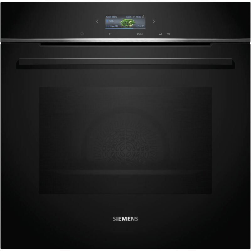 Siemens iQ700 HB774A1B1. Dimensione del forno: Media, Tipo di forno: Forno elettrico, Capacità interna forno totale: 71 L. Posizionamento dell'apparecchio: Da incasso, Colore del prodotto: Nero, Tipo di controllo: Touch. Tipo di orologio: Elettronico, Applicazioni per il controllo supportate: Home Connect. Classe efficienza energetica: A+, Consumo energetico (convenzionale): 0,87 kWh, Consumo energetico (convezione forzata): 0,69 kWh. Tipo di lampada: Alogena