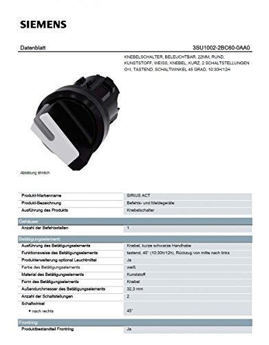 Siemens Sirius atc - Selettore rotondo nero bianco lancetta corta o-i momentaneo 45o