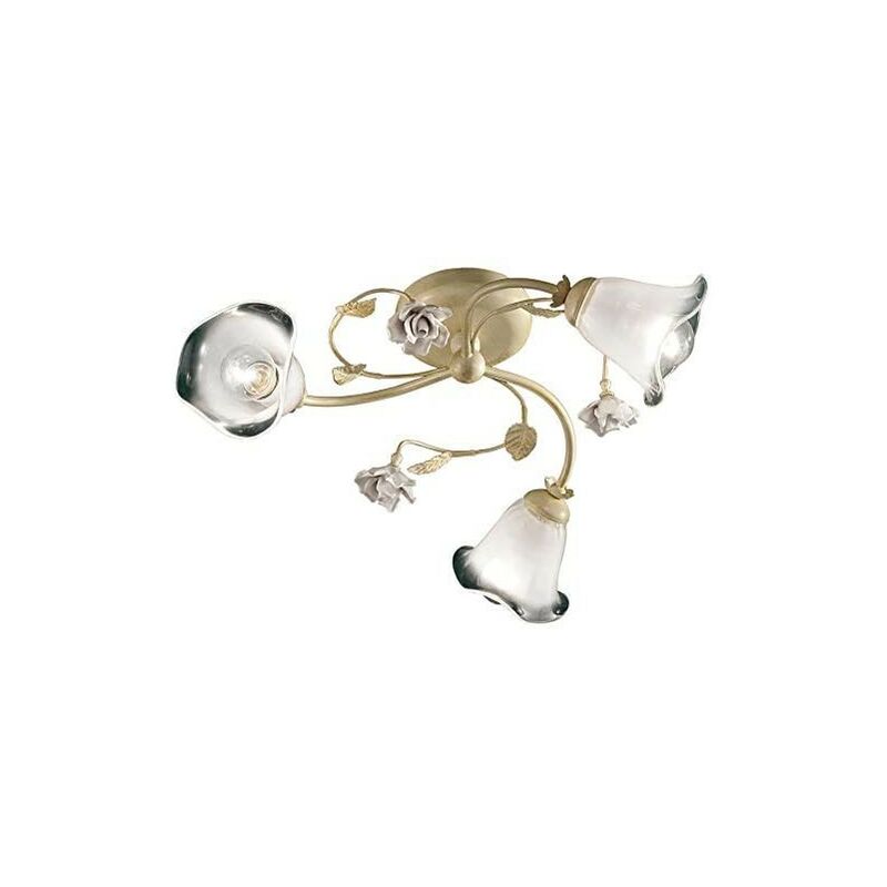 Il vetro sabbiato sfumato dona alle lampade della linea Siena una delicata leggerezza che compensa la ricchezza delle lavorazioni artigianali delle rose in ceramica e dei rami frondosi in metallo. Per illuminare gli ambienti punteggiandoli con la forza rigogliosa della natura. Altezza: 19 Cm Diametro: 46 Cm