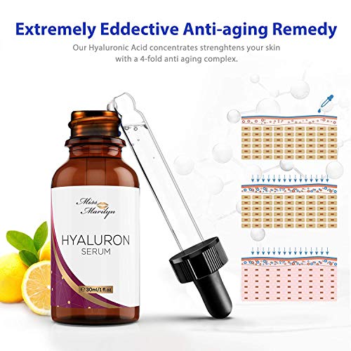 Siero di acido ialuronico altamente concentrato - effetto immediato - Gel ialuronico altamente efficace anti invecchiamento contro le rughe - Prodotto in Germania.