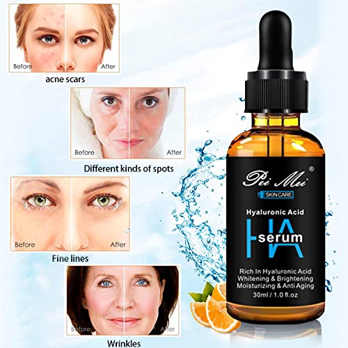 Siero Acido Ialuronico, Siero Viso Vitamina C, Siero Antirughe Viso, Siero Viso all'Acido Ialuronico, Illuminante e Rimpolpante, Siero Anti Aging, Per Tutti i Tipi di Pelle,30ML