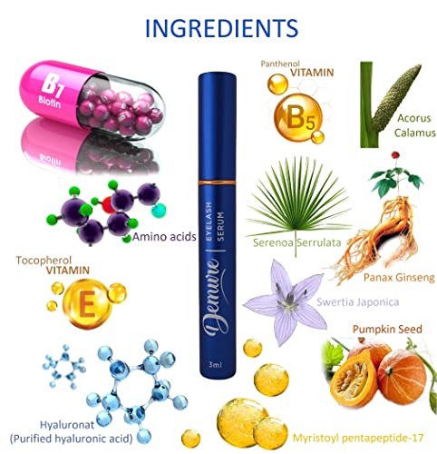Siero Ciglia Demure, Siero Sopracciglia, Siero Ciglia per L'estensione delle Ciglia, Siero Nutriente per la Crescita delle Ciglia per Ciglia folte e Lunghe
