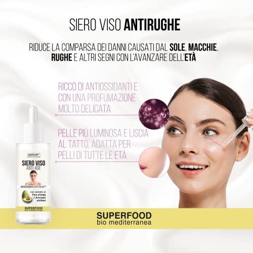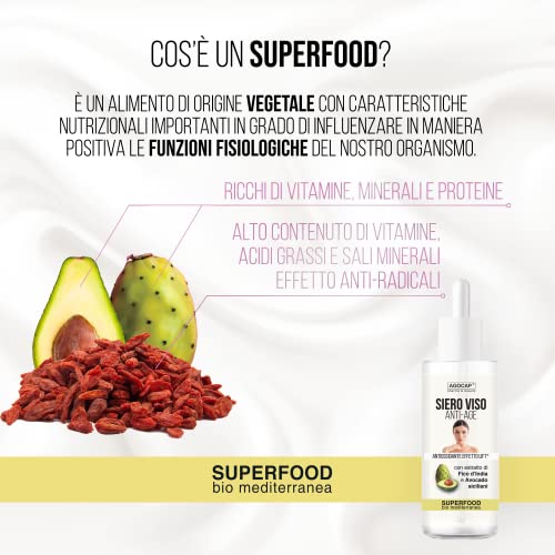 Siero Viso Superfood a base di Avocado, Fico d'India di Sicilia, Bacche di Goji siero viso antirughe nutriente e antiossidante per pelli sensibili e mature. Siero antirughe 100% naturale - Agocap