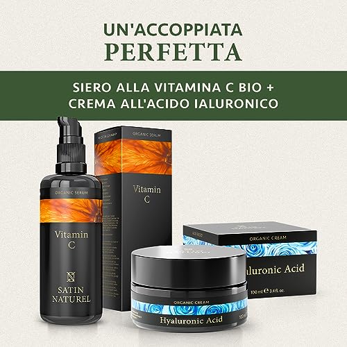 Siero Vitamina C + Acido Ialuronico Viso 100ml + Vitamina E - Viso e Contorno occhi - Crema Viso Antirughe - Crema Viso Idratante - Skincare - Antirughe, Antimacchie, Illuminante - Satin Naturel