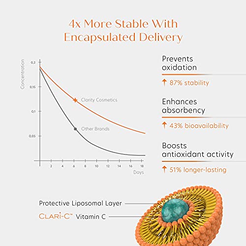 4 VOLTE PIÙ STABILE GRAZIE AL RILASCIO INCAPSULATO: I normali sieri alla vitamina C sono altamente instabili e perdono efficacia in meno di 10 MINUTI. Il nostro RIVESTIMENTO LIPOSOMICO protegge la nostra formula dall'ossigeno, permettendole di penetrare negli STRATI PIÙ PROFONDI DELLA PELLE nel corso di 24 ore. Il nostro flacone brevettato FROSTPROTECT aumenta anche la stabilità del 69,5%.