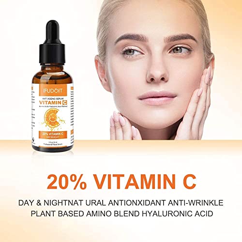 Siero alla vitamina C, siero alla vitamina C per viso/corpo con acido ialuronico, con 20% di vitamina C e 100% vegano, retinolo e aminoacidi - Aumenta il collagene della pelle, antietà e rughe