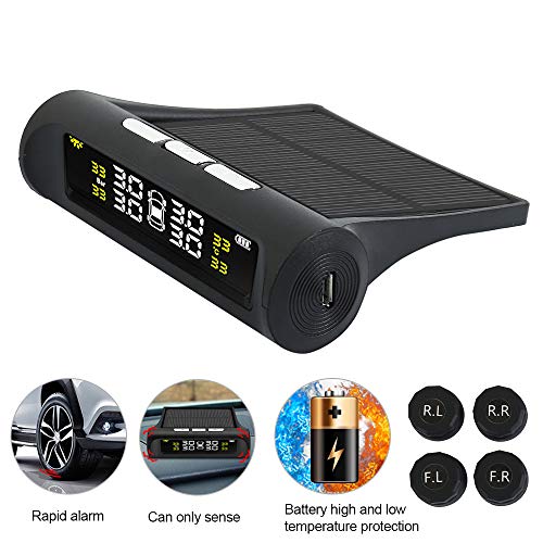 Sifeier Auto TPMS sistema di monitoraggio della pressione dei pneumatici dell' energia solare senza fili con sistema di allarme con display LCD a colori e 4 sensori per auto