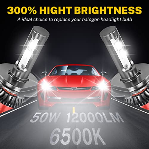 Sifniea 2Pcs Lampadina H4 LED,50W 12000LM 6500K Per Fari Auto Luce Abbagliante Anabbagliante IP68 Impermeabile Sostituzione Lampada Alogena E Fari Allo Xenon 12V