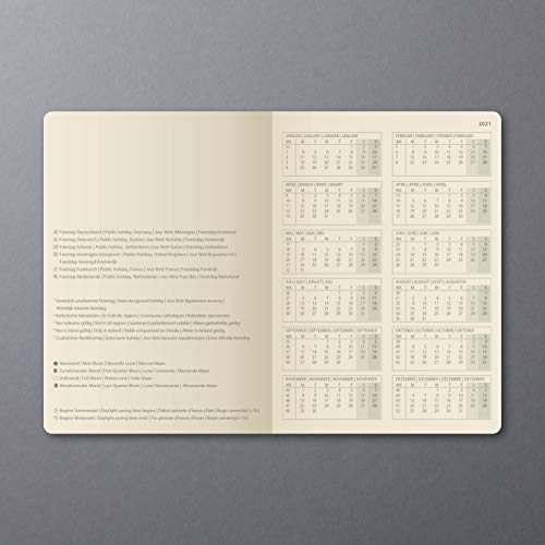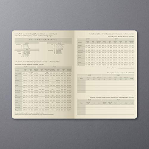 Agenda-taccuino settimanale con hardcover nera, 18 mesi (luglio 2020 dicembre 2021), elegante finitura millerighe, formato simile all'A5 (14,8 x 21,3 cm)