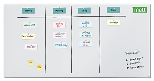 SIGEL GL525 Lavagna magnetica in vetro premium, superficie opaca, 200 x 100 cm, montaggio facile, bianco, Artverum
