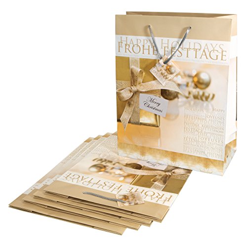 SIGEL GT016 Borsa Regalo natalizia grande, Golden Shimmer, 26x33x12 cm, carta, 5 pz.