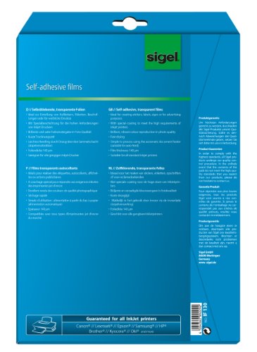 SIGEL IF130 Film InkJet trasparente, autoadesivo, per alimentazione automativa, A4, 140 µm, 10 fg