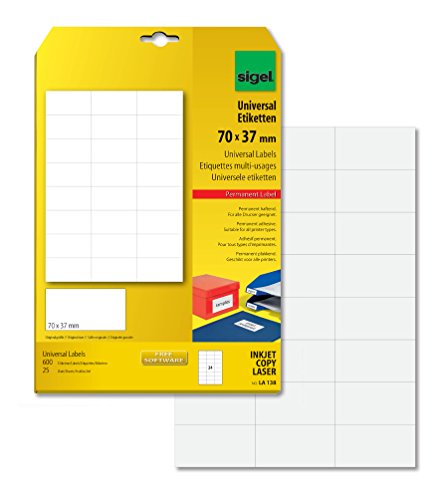 SIGEL LA138 Etichette universali, bianco, 70x37 mm (A4), 600 et.=25 fg