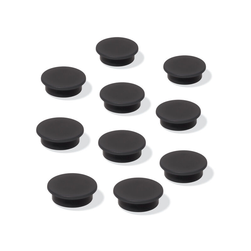 I 10 magneti rotondi in ferrite in una custodia di plastica nera sostengono fino a 4 fogli di carta DIN A4 (80 g/m²) su lavagne. I magneti sono rivestiti sul fondo per proteggere la superficie della lavagna.