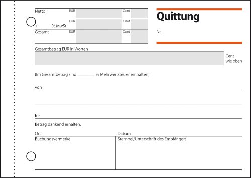Sigel QU615 blocco di ricevute formato A6 orizzontale, 50 fogli, 1 pezzo 10 pz, 50 fogli 10 pezzi