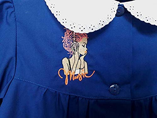 Siggi. Grembiule Scuola elementare Happy Bimba Bambina Musica Colore blu con Ricamo - Abbottonatura centrale con Bottoni Colletto Bianco 6 7 8 9 10 11 12 13 anni (6 anni Altezza bimbo/a: 116 cm)