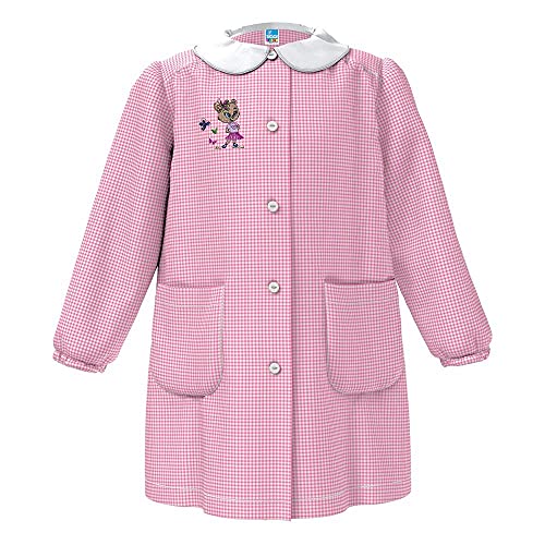 Siggi Happy School Grembiule Bambina Asilo Orsetto Farfalle Bottoni 33gr3567, Bianco Rosa, 4