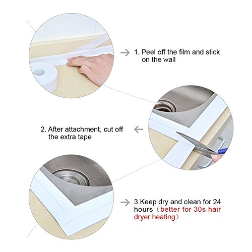 【AMPIA APPLICAZIONE】 La striscia a parete può essere utilizzata per sigillare la cucitura di fornelli a gas, lavandino, lavandino, vasca e pareti, può evitare di sporcarsi e mantenere la cucina e il bagno puliti e in ordine.