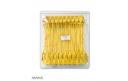 100 Sigilli di Sicurezza con meccanismo di chiusura in metallo. Lunghezza 300 mm. Numerazione Progressiva. Applicazione: Chiusura Taniche, Cisterne, Automezzi, Flaconi, Casse etc. etc.