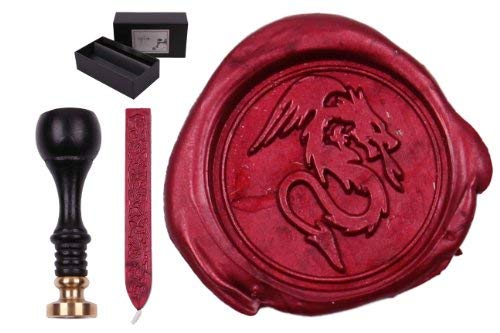 Sigillum - Set di timbri con drago inciso, 1 stick di ceralacca in confezione regalo