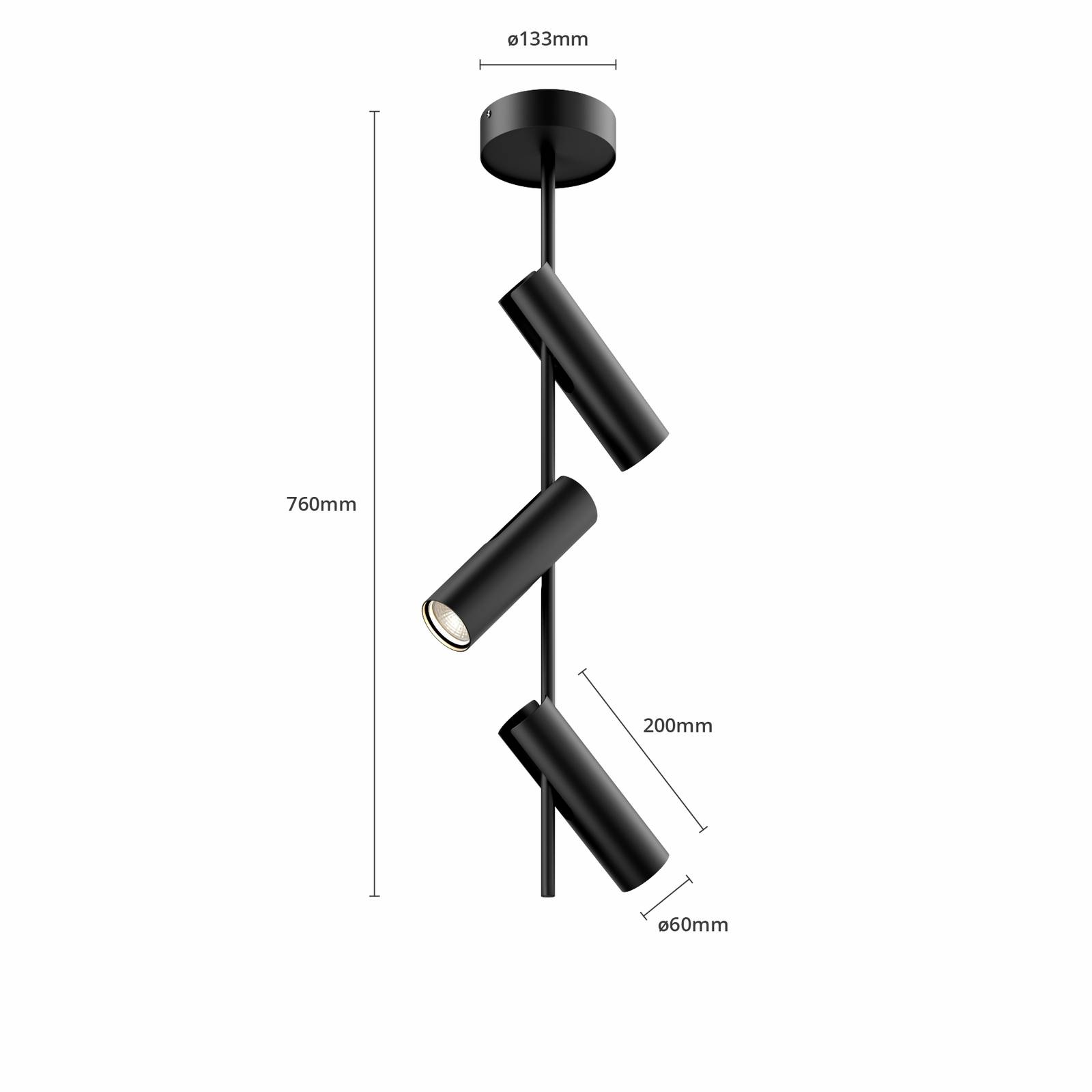 SIGMA Faretto da soffitto Leda 3, 3 luci, nero;