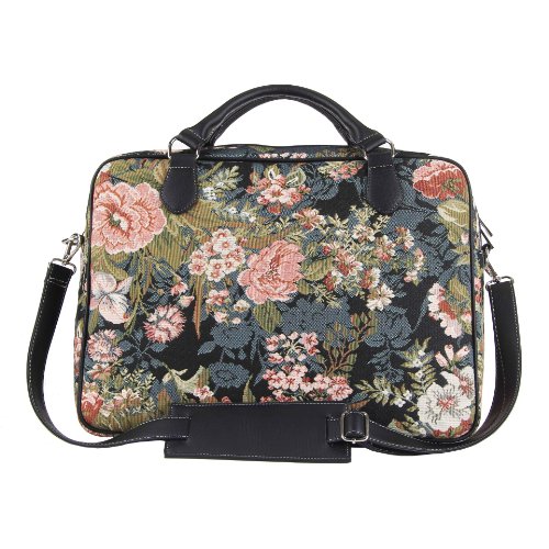 Signare Tapestry Arazzo borsa tracolla uomo, borsa porta pc, borsa lavoro donna, custodia pc 15.6 pollici con Disegni da Giardino (Peonia)