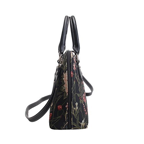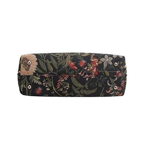 Signare Tapestry Arazzo Top Handle borsa borse donna, borsa donna tracolla con Disegni da Giardino (Mattina Giardino Nero)