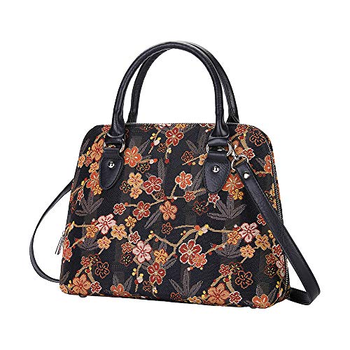 Signare Tapestry Arazzo Top Handle borsa borse donna, borsa donna tracolla con disegni delle collezioni V&A (Ume Sakura)
