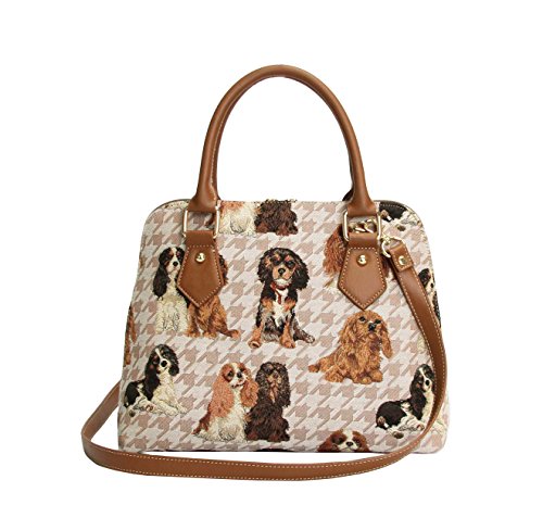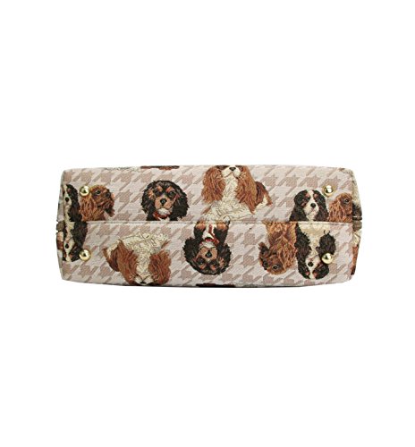 Signare Tapestry Arazzo Top Handle borsa borse donna, borsa donna tracolla con Disegni di Cani (Cavalier King Charles Spaniel)