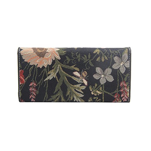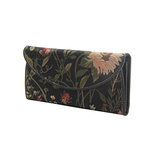 Signare Tapestry Arazzo portafoglio donna, portatessere donna, portafogli donna, Lady Wallet con Disegni da Giardino (Mattina Giardino Nero)