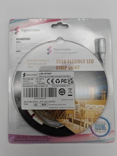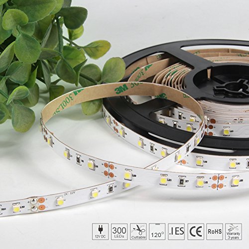 Signcomplex Striscia LED flessibile 3528 SMD LED Ribbon 5m una bobina 12VDC 300leds 5000x8mm Nastro Luci (Bianco Freddo)