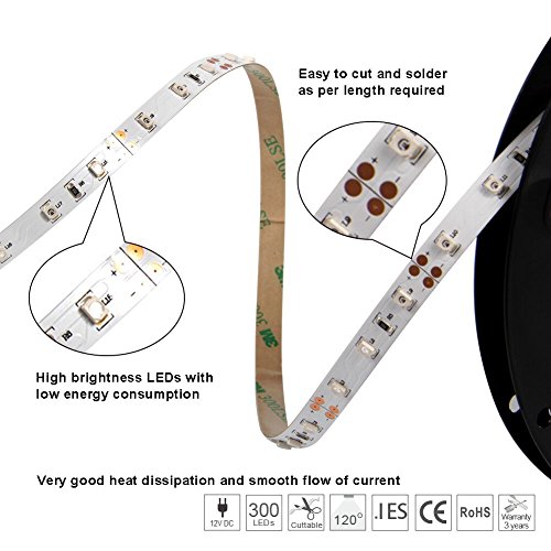 ❤️ IGH ALTA LUMINOSITÀ: lo strato di PCB adotta un pannello di rame a doppio strato da 1 oz, un'eccellente conduttività e una buona dissipazione del calore, l'angelo del fascio è di 120 gradi, il 5m 300 untis SMD 3528 ad alta luminosità ha portato una luce a nastro abbastanza luminosa.