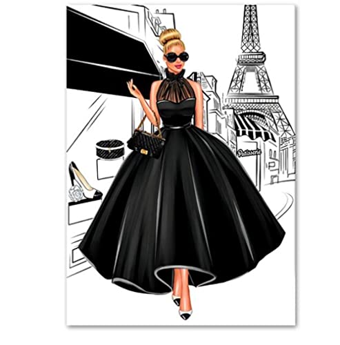 Signora Parigina Alla Moda Quadro Su Tela Immagine Da Parete Home Decor Moda Opera D'Arte Da Parete Per Soggiorno Camera Da Letto Sala Da Pranzo Pronta Da Appendere