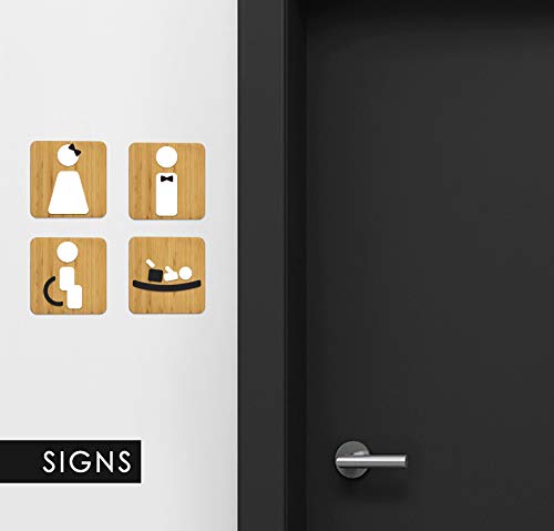 Signs - Styled Knot, Set 4x- Targa Bagno Uomo Donna Disabili Fasciatoio - Segnali Bagno adesivi Toilette Uomo Donna - Cartelli Bagno Uomo Donna Disabili - Adesivi WC Disabili (Prime Quadrato - Bambù)