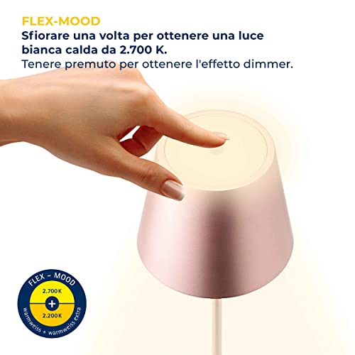 FACILE DA USARE: basta solo un dito e la lampada si può accendere o spegnere senza problemi ed è dimmerabile con l'interruttore dimmer a sfioramento. La funzione Flex-Mood fornisce inoltre una luce bianca calda e non abbagliante in 2 temperature di colore (2.700 K e 2.200 K), creando la giusta atmosfera in qualsiasi momento, anche come lampada notturna e da lettura.