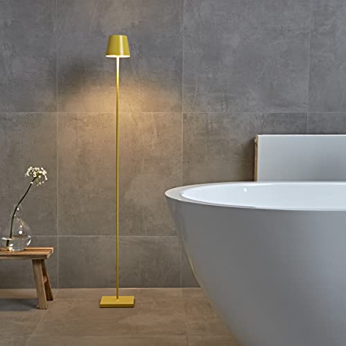 SIGOR Nuindie - Lampada da terra a batteria LED dimmerabile per interni ed esterni, altezza 120 cm, ricaricabile con Easy-Connect, durata luce 24 ore, Giallo sole