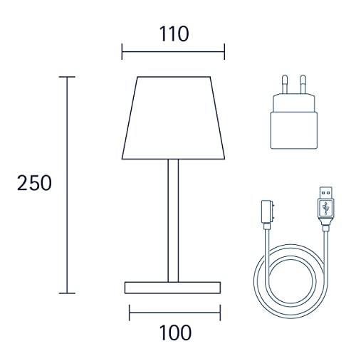 PER INTERNI ED ESTERNI: lampada da tavalo a batteria LED dimmerabile per giardini, balconi, terrazze, soggiorni e aree esterne. Grazie alla classe di protezione IP54 è in grado di resistere anche agli acquazzoni ed è perciò l'illuminazione da giardino ideale. Garantisce un posizionamento stabile per via del suo elevato peso specifico (~1 kg).