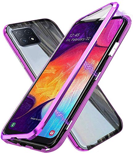 SiGrid Cover per Oppo A73 5G / A53 5G, Custodia Adsorbimento Magnetico Paraurti in Metallo Fronte e Retro in Vetro Temperato Flip Custodia Magnete 360 Gradi Protezione Case, Viola