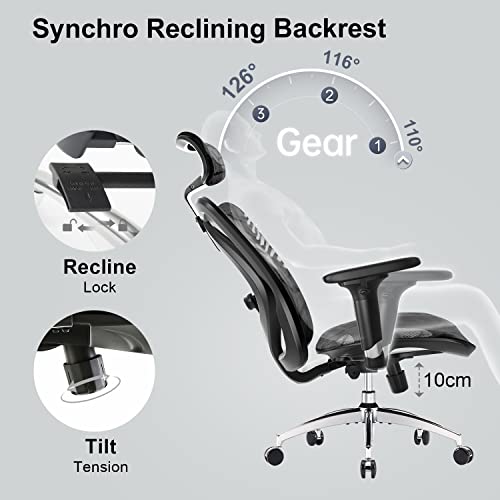 SIHOO Sedia ergonomica con Supporto Lombare, Sedia da Ufficio, braccioli Regolabili in 3D, Tessuto a Rete Delicato sulla Pelle, poggiatesta Regolabile, Sedia da Ufficio ergonomica (Nero)