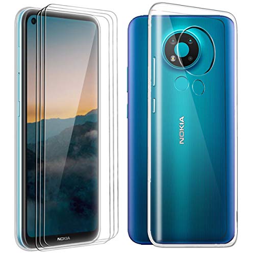 Siide Cover per Nokia 3.4 (6.39"), con 3 Pezzi Pellicola Protettiva in Vetro Temperato, Custodia Protettiva in Silicone Morbido Trasparente TPU Case Accessori per Nokia 3.4