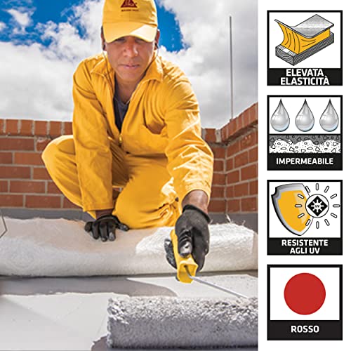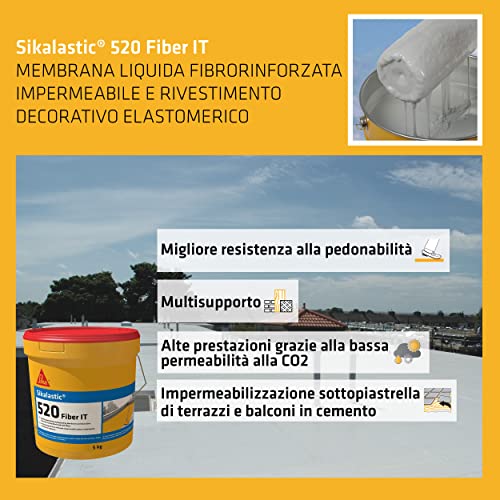 Sika - Sikalastic-520 Fiber IT, Rosso - Membrana liquida impermeabilizzante - Rivestimento decorativo elastomerico - Resistente ai raggi UV - 5kg
