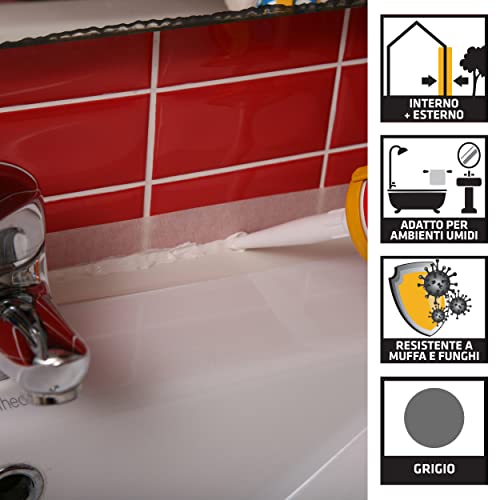 Sika - Sikasil C, Grigio - Sigillante siliconico multiuso per applicazioni in bagni e cucine - Resistente a raggi UV, funghi e muffa - 300ml