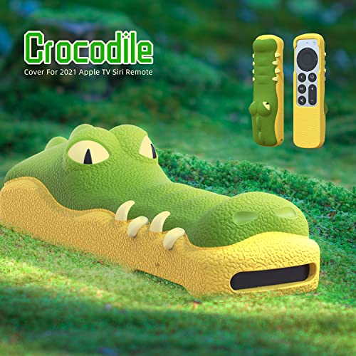 SIKAI Custodia protettiva per telecomando Apple TV 4K Siri (2021), a forma di coccodrillo, per Airtag, antiscivolo, antigraffio, antiurto