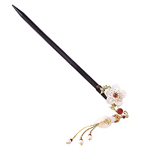 SIKESONG Bastoncino Perla Giada Nappa - Bacchette per Spille per Capelli in Ebano Cinese retrò - Guscio da Sogno Gelsomino Clip Clip Gioielli Etnici, Classici Accessori da Sposa Hanfu Cheongsam