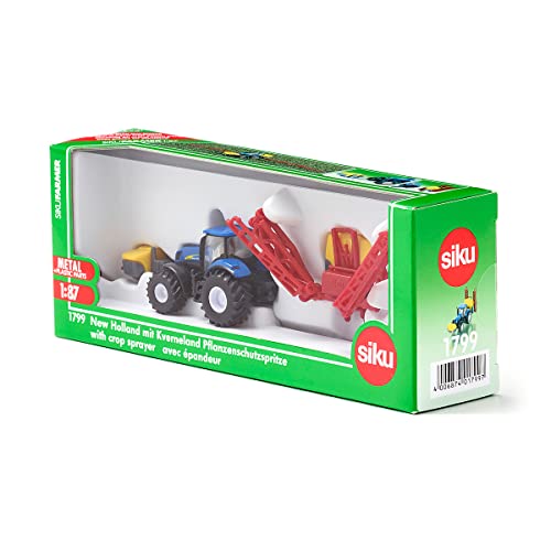 Siku 1799, Trattore New Holland con irroratrice Kverneland, 1:87, Metallo e Plastica, Blu, Barre irroratrici richiudibili